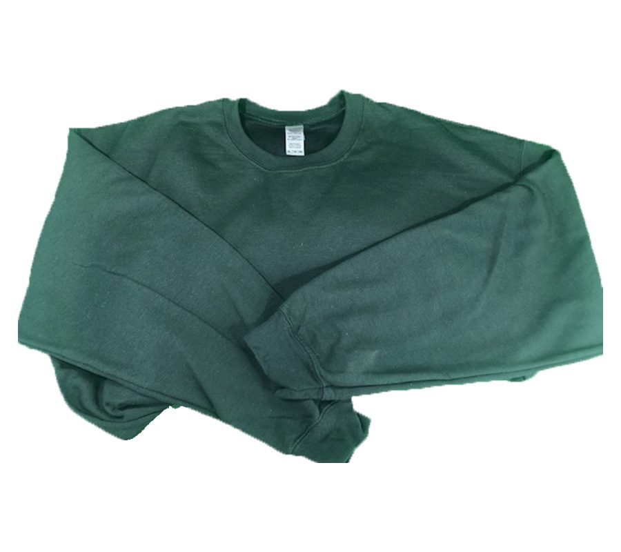 Men’s forest green sweat tops crew neck comes in sizes S-5XL Regular size pack in 36 per case oversized cones in 12 per case